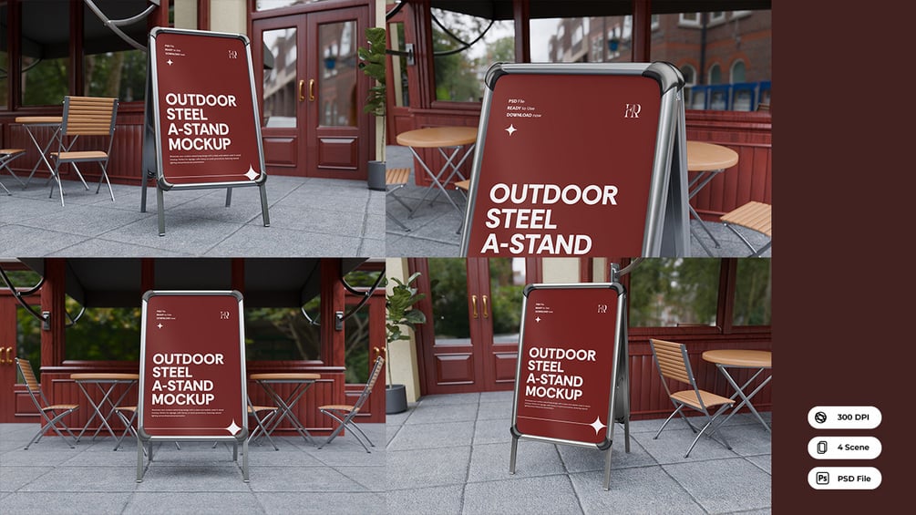 4 Steel A-Stand Sign Mockup Outdoor