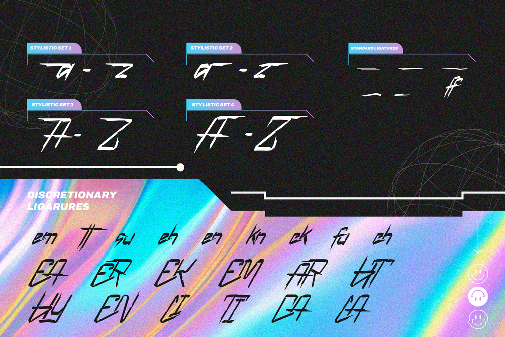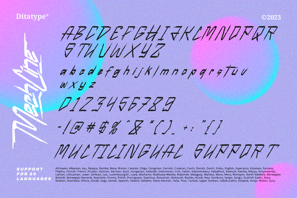 The characters in Mechline embody the essence of the future, with a weight that strikes the perfect balance between elegance and technological advancement. The artistic letter shapes evoke a sense of creativity, giving each character a distinct and avant-garde identity. Mechline's irregular outlines add an element of unpredictability, contributing to its futuristic allure. Enjoy the features here.